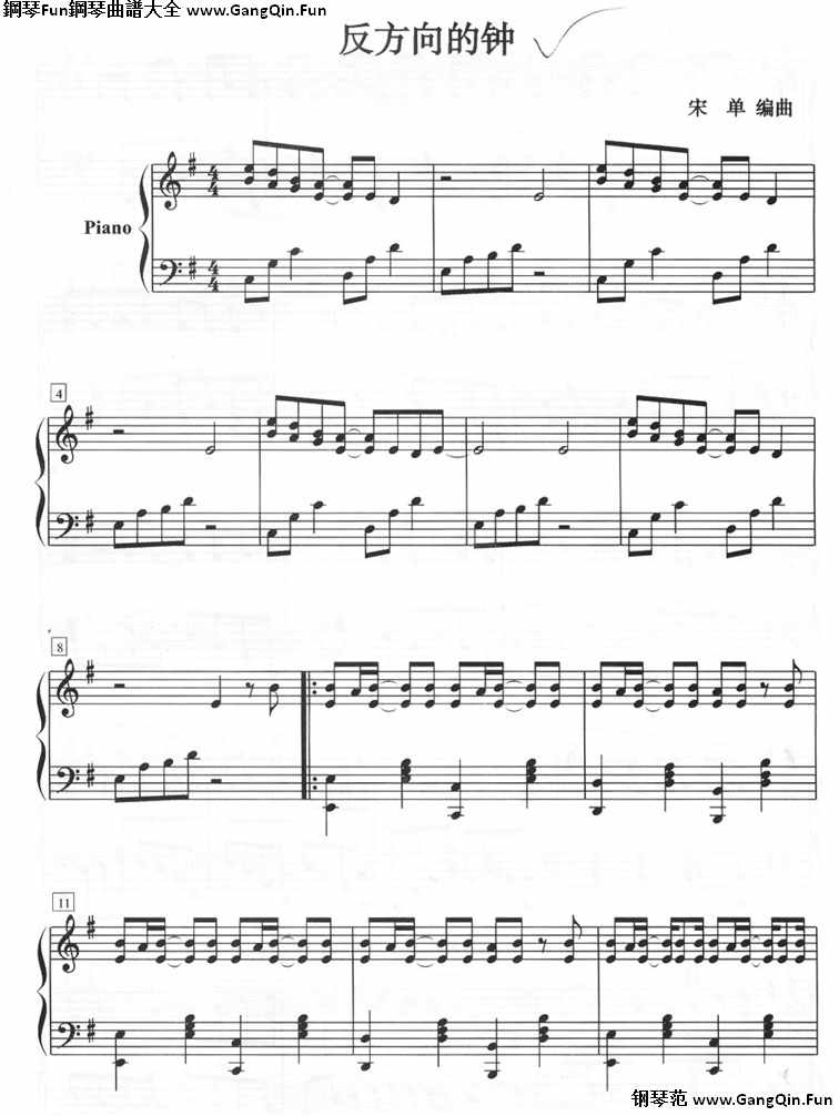 周杰倫《反方向的鍾(鋼琴五線譜)[不同版本]》鋼琴曲譜(共3張)