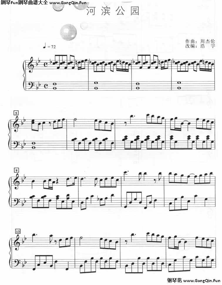 s-h-e《河濱公園(鋼琴譜)[不同版本]》鋼琴譜(共4張)