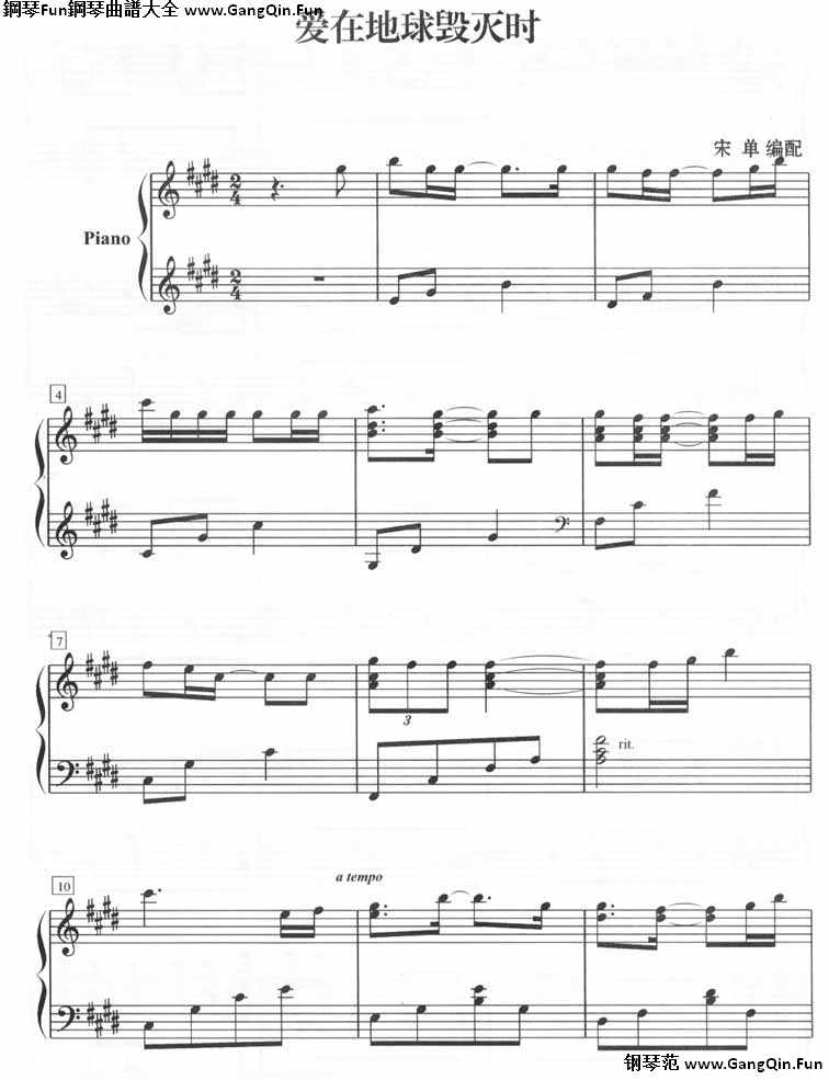李國祥《愛在地球毀滅時(鋼琴五線譜)》鋼琴曲譜(共3張)