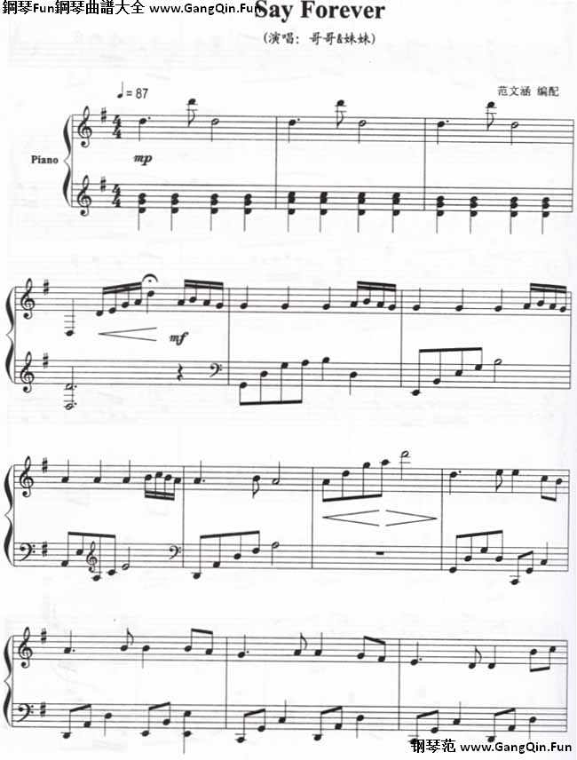 鋼琴演奏樂譜《Say Forever-哥哥妹妹(線譜)》鋼琴譜(共4張)