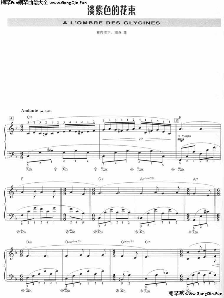 理察-克萊德曼《淡紫色的花束(五線譜版)[鋼琴演奏樂譜]》(鋼琴譜共5張)