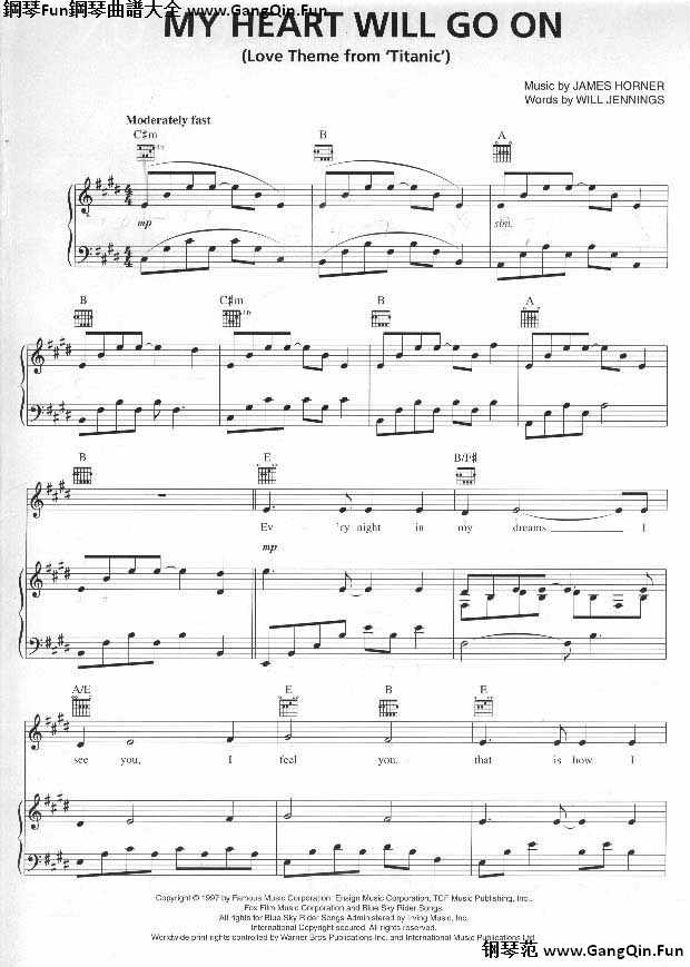 鋼琴演奏樂譜《My Heart Will Go On-鐵達尼號(影視線譜)[完整版]》(共10張圖片)