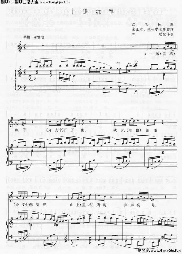鋼琴演奏樂譜《十送紅軍-鋼琴伴奏(線譜)[不同版本]》(共2張鋼琴譜)