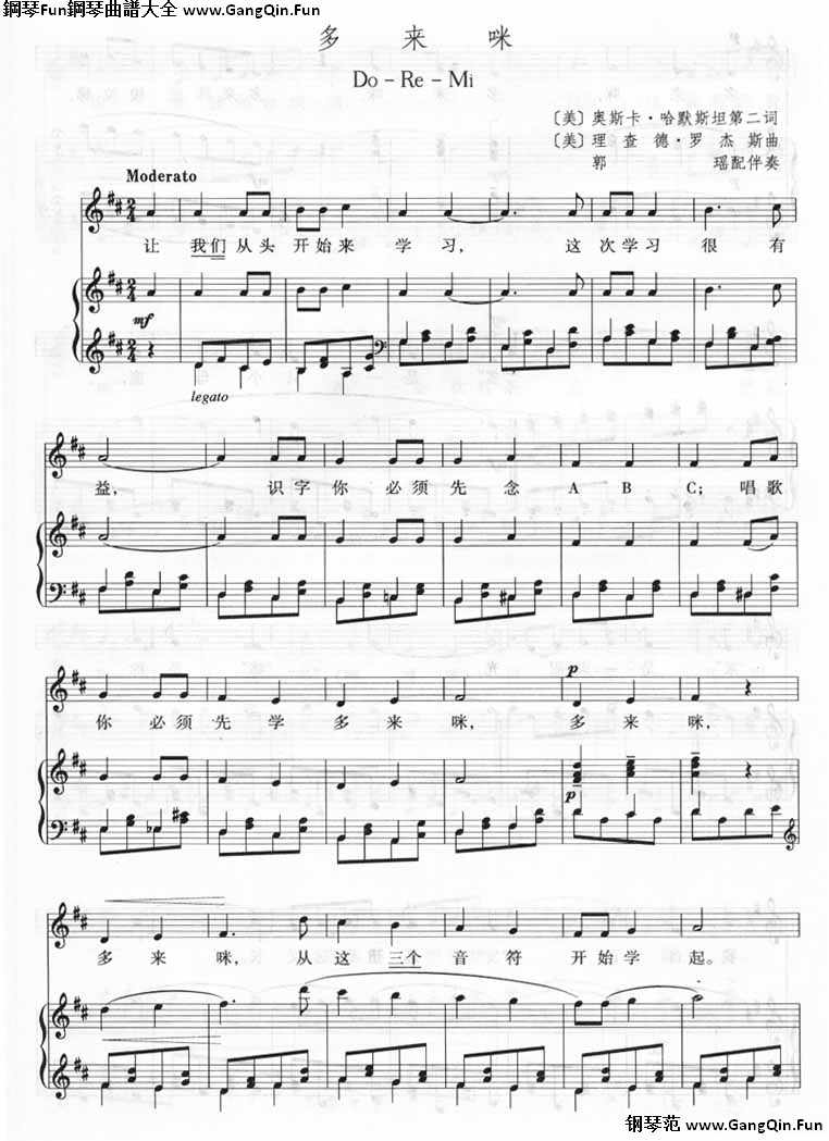 鋼琴演奏樂譜《哆來咪 音樂之聲》鋼琴曲譜(共3張)